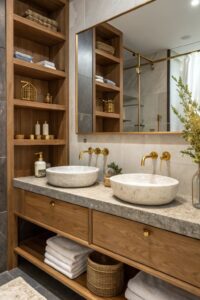 Banyoda dikey alanı en verimli şekilde kullanmak için boy dolapları vazgeçilmezdir. Bu dolaplar, temizlik malzemelerinden havlulara kadar birçok eşyayı düzenli bir şekilde depolamanızı sağlar. ARICI YAPI & MİMARLIK, boy dolaplarını banyonuzun diğer mobilyalarıyla uyumlu olacak şekilde tasarlar ve iç düzenlemesini tamamen sizin ihtiyaçlarınıza göre şekillendirir. Çekmeceli, raflı veya kapaklı bölümlerle entegre edilebilen bu dolaplar, banyonuzdaki dağınıklığı ortadan kaldırır.