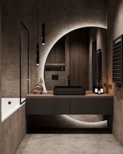 Modern ve minimalist tasarım anlayışı, sade çizgiler, düz yüzeyler ve fonksiyonelliği ön planda tutar. Bu tarz dolaplar genellikle parlak veya mat yüzeylere sahip olup, genellikle kulpsuz veya gizli kulp sistemleriyle donatılmıştır. Açık renkler, cam ve metal detaylar modern banyo dolaplarında sıkça kullanılır. ARICI YAPI & MİMARLIK, Gebze’deki projelerinde son trendleri takip ederek, banyonuza ferah, aydınlık ve çağdaş bir atmosfer kazandırır. Akrilik veya membran kaplama yüzeyler, bu tarz için ideal seçeneklerdir.